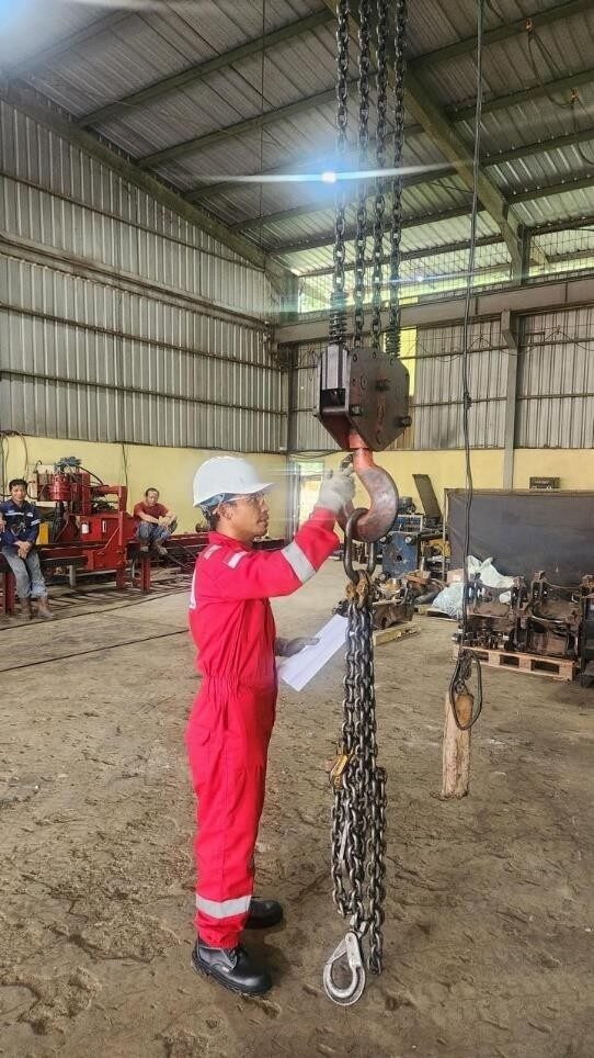 * Inspeksi dan Pengujian Objek K3: Pemeriksaan dan pengujian pesawat angkat dan angkut (forklift, crane), bejana tekan, instalasi listrik, sistem proteksi kebakaran, gondola, dll.